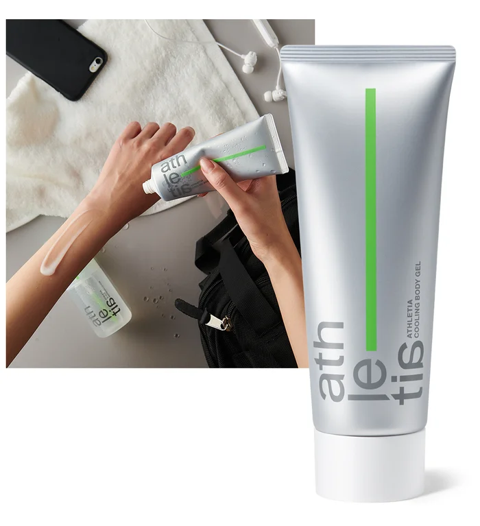 Apply COOLING BODY GEL on arms and neck, avoiding wounds or other sensitive areas. As the smooth gel blends onto skin, feel the cooling sensation that refreshes and hydrates the skin.