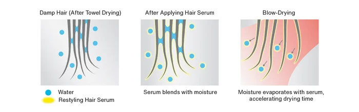 Hair reshapes best when lightly damp. This serum’s refreshing milk-gel texture mimics that effect — softening dents and creases to make hair more flexible and easier to restyle. It blends seamlessly into dry or damp strands, creating just the right moisture balance to reset your look in seconds.